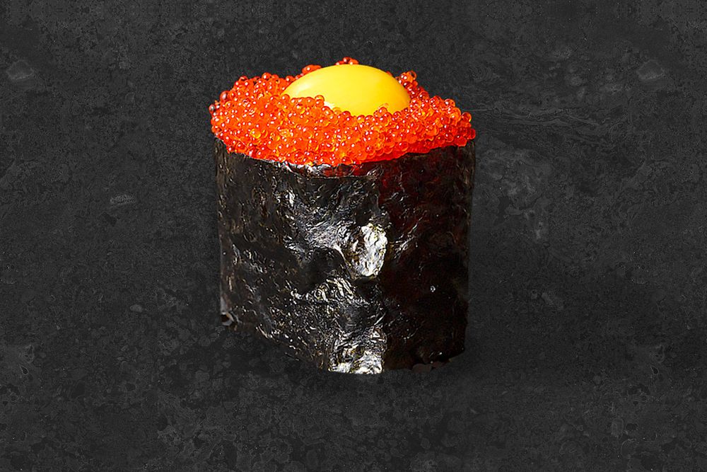 Суши «Тобико» с перепелиным яйцом (чёрная)