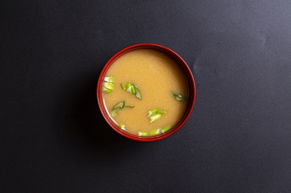 Мисо сиро с сёмгой, вакаме и зеленым луком