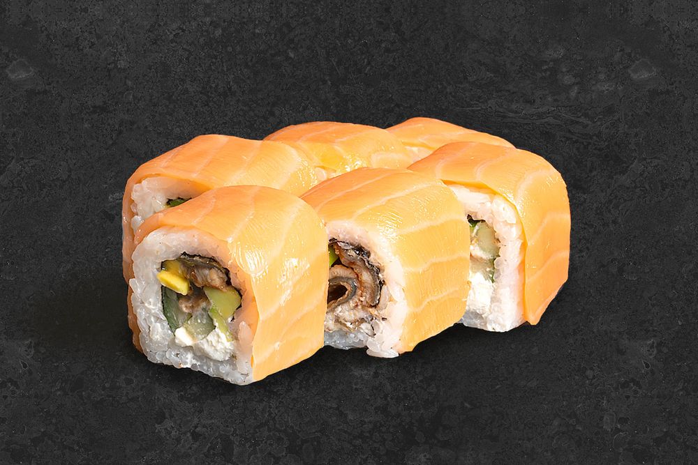 С сыром филадельфия, копчёным угрём, авокадо и огурцом